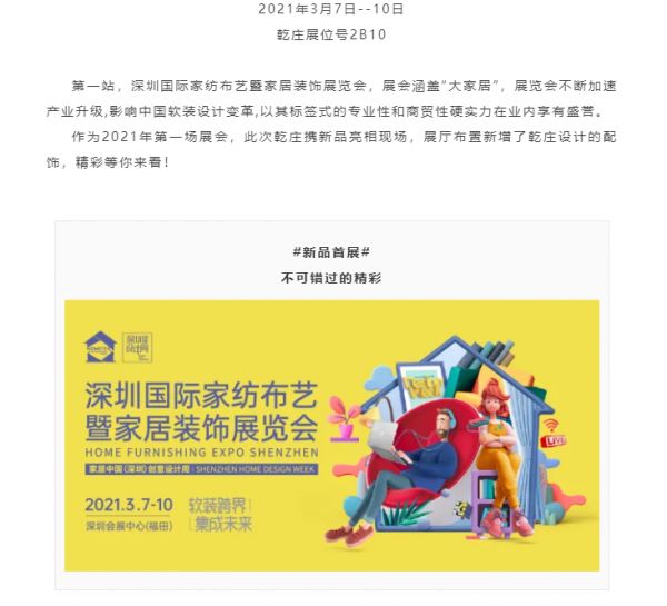 展会做为大型众多展商聚集的一个平台,乾庄自然也受邀参展,展会接踵而来,3月展会月来袭。