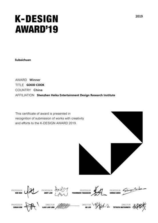 被誉为「亚洲三大设计奖」之一的第八届韩国K-DESIGN AWARD刚刚揭晓了2019年的获奖名单,由深圳市黑卡娱乐设计研究院的设计总监-刘百川老师设计的「英国-伦敦 GOOD COOK」项目从来自世界30个国家共2229件作品中脱颖而出,夺得大奖。