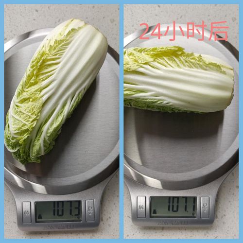 白菜从107.3g变成了107.1,水分仅损失0.2g,可以忽略不计。