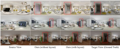 KooLab实验室的其中一篇论文是尝试从单张全景图来生成室内场景新视角的研究引人关注。该研究由KooLab与上海科技大学、新加坡科技研究局(A*Star)高性能计算研究所等共同提出,可有效解决现有新视角生成方法因透视相机视野大小限制,生成效果会随着相机移动的剧烈程度而急剧降低的问题,进一步提升设计体验。