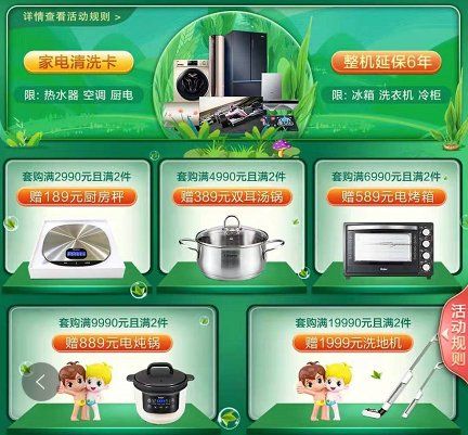 此外,海尔产品套购更实惠,套购满额且满2件能获赠精美礼品,有电烤箱、电炖锅和最高价值1999元的海尔洗地机。同时,国美&海尔还将服务升级,购买热水器、空调、厨电产品可获家电清洗卡,购买冰箱、洗衣机、冷柜还能整机延保6年。