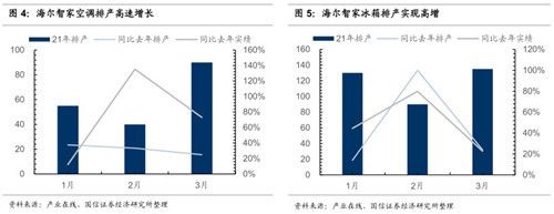 国信证券在快评中提到,从近期数据看,海尔智家在空冰上表现出色。空调方面 , 根据产业在线的数据,公司1月空调内销量同比增长29%,增速高于其他主要空调生产企业;公司空调排产亦实现较快增长,21Q1内销排产量为185万台,同比去年排产增长30%,同比去年实绩增长57%。冰箱方面 , 公司Q1内销排产355万台,同比排产/实绩分别增长32%/42%,同比19年分别增长15%/23%,增长势头强劲,Q1预计公司将在内销强劲恢复的带动下实现良好增长。
