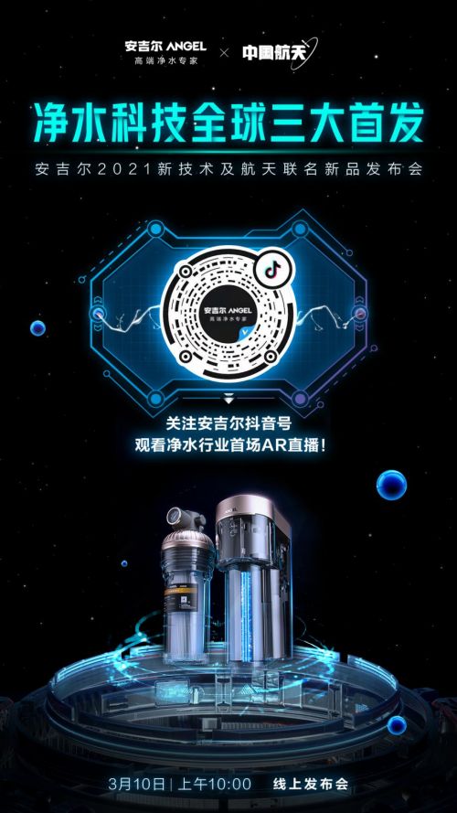 3月10日上午10点,由高端净水专家安吉尔举办的净水行业首个线上AR发布会将如期上线,届时,不仅有中国航天联名款新品的推出,其搭载的两大核心黑科技也将公众于世。