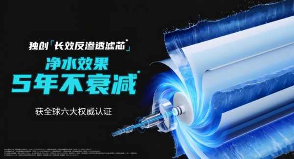作为家喻户晓的高端净水品牌,安吉尔在净水领域的技术研发实力始终在业界领先。此次待发布航天版新品除了搭载航天纳米晶须抑菌技术,还搭载了另一项打破国外反渗透技术垄断的黑科技成果——长效反渗透膜滤芯2.0。