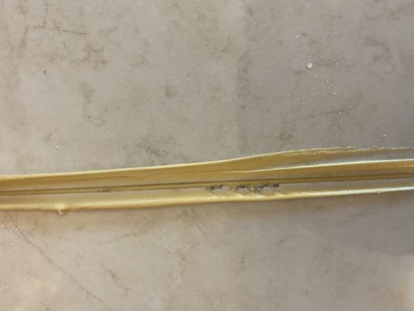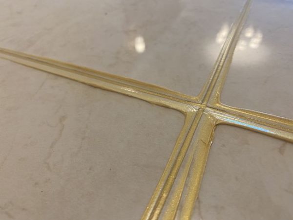 此外,美缝剂的表面也要保证统一,这一点考验的是压缝技术。看上面这张照片,美缝剂表面坑坑洼洼的,就是压缝过程中用力不均。