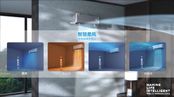 为了给用户提供更舒适的体验,TCL空调再次突破智慧柔风技术难题,实现智慧柔风2.0升级。TCL 智慧新风空调根据用户实际使用场景及需求,在制冷模式下,扫风方式由原来单一的柔风升级为柔风、热毯风、沐浴风、环抱风等四种柔风不直吹模式,多场景下做到有凉意舒适的温度,冷风贴墙不吹人的舒适体验。