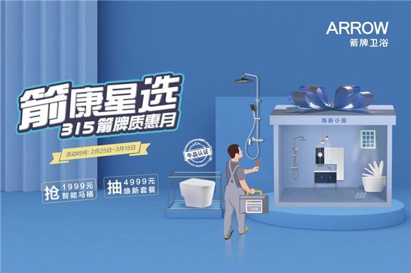 以消费者权益为基点,箭牌家居打造315箭牌质惠月:2月25日到3月15日,开启“箭康焕新 牛品认证”活动。在活动期间,箭牌家居全国寻找#箭牌牛品体验官#解锁工厂无门槛优惠券,通过参与牛品挑战,赢百元无门槛优惠券;3.15元预约“315箭牌牛牛卡”,到店任意消费领箭牌地漏ADL50T06AL/BL一个;此外还有1999智能马桶二选一、抽4999元改造焕新等诸多活动权益!