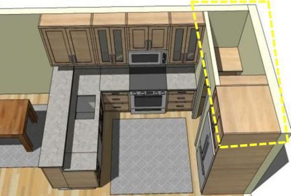 从装修开始到现在,厨房算是我花费精力最多的地方了,尤其是布局上,没有按照传统的设计来,柜子不打到底,而是留了1㎡的空间,直接砌堵墙隔出个储藏室出来!如下图▼