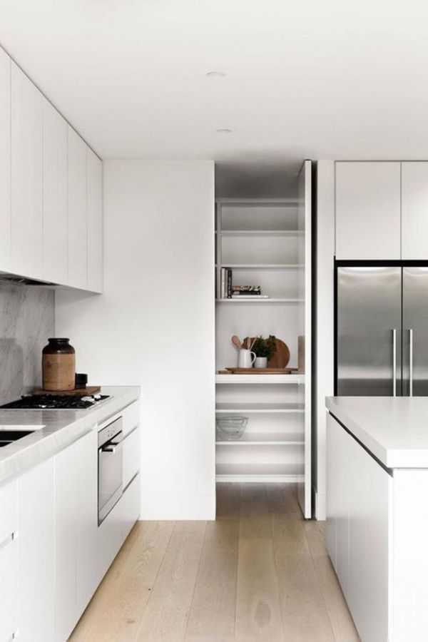 无论是食物还是调料瓶,或者是一些闲置的电器啥的,都可以置放在储藏室里面,归纳的整整齐齐,而且因为是密闭的空间,也不用担心会落灰哦,打理省心。没有杂七杂八的物品摆放在台面上,外面的橱柜也可以变得干净利落点了,看着这样的环境,做起饭来就知道就多享受了。
