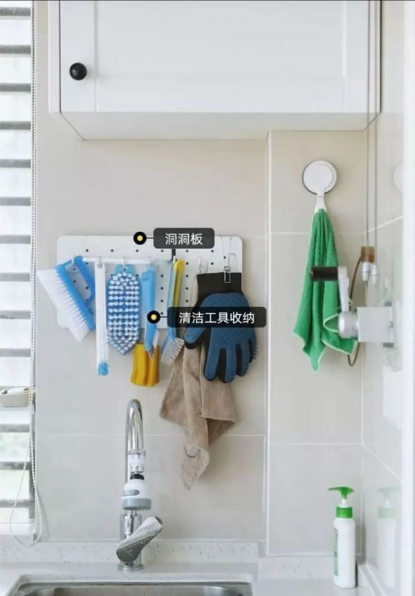 但是你家装修的话,齐家室内姐建议安装洞洞板,挂钩会比较灵活,对比置物架要更省空间,也不容易积灰。
