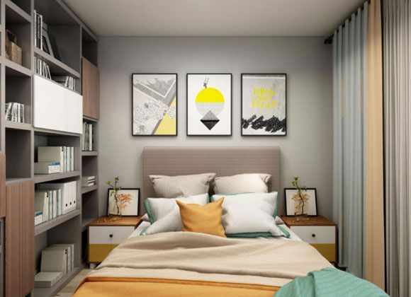 主卧室的装修效果,配色时尚靓丽,整体的设计效果还有点轻奢风的质感。