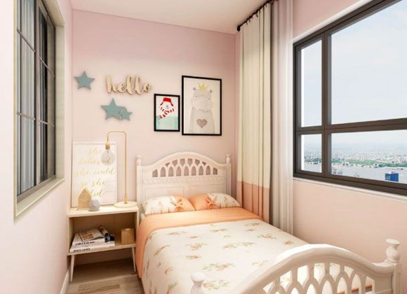 女孩房的装修以粉色调为主来设计,简洁明快又特别活泼。