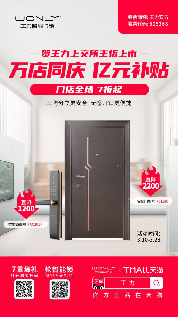 王力安防诚邀您参与朋友圈转发集赞,前往门店挑选心仪产品,领取上市分红,分享上市喜悦!
