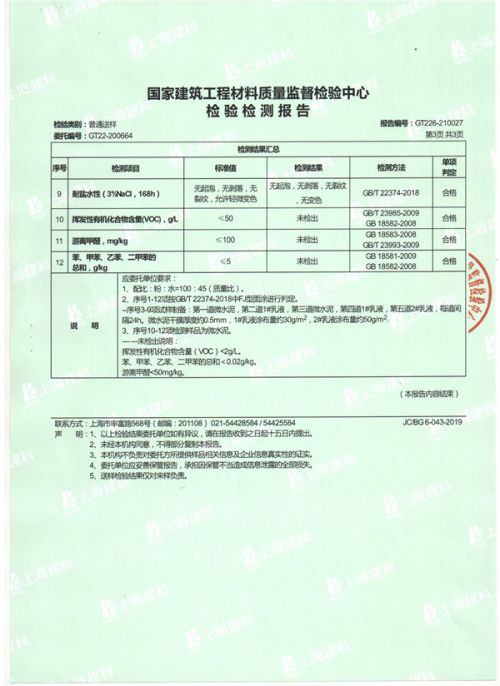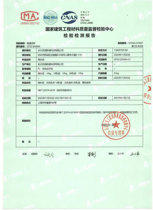 克洛斯威微水泥拥有强悍防水防潮性能,国检中心168小时监测结果:无气泡、无剥落、无裂纹、无变色!
