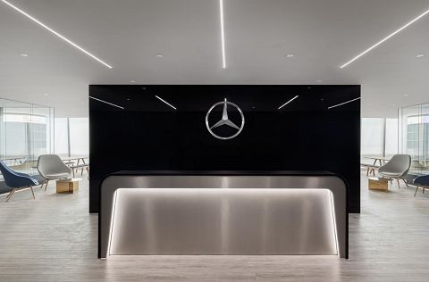 为全球商户创建环保的办公空间服务品牌——HTM赫红建筑设计为梅赛德斯-奔驰公司完成办公空间设计装修服务。