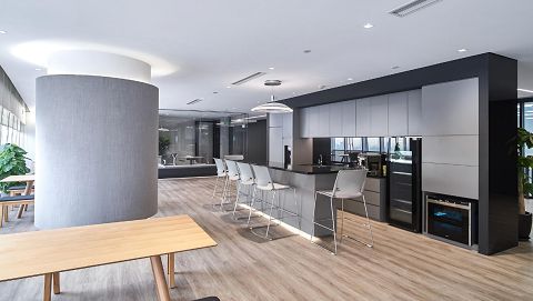 科技感十足的咖啡吧,在墙面摆放着大型墙面屏幕播放着奔驰概念车,象征着奔驰从未停止探索,创造,颠覆,革新的决心;小型的独立隐私间,尊重个人隐私,给员工留下属于自己的一片小天地;加上舒适的休闲区,无一不彰显了企业对员工的关怀。