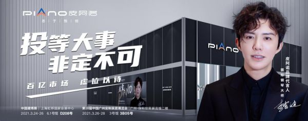 2021年,皮阿诺以全新升级的品牌形象、万众瞩目的代言人形象、引领潮流的定制新品,于中国建博会(上海)、第10届中国广州定制家居展览会闪耀集结!2021双展云集,百亿市场,虚位以待——投等大事,尽在皮阿诺。