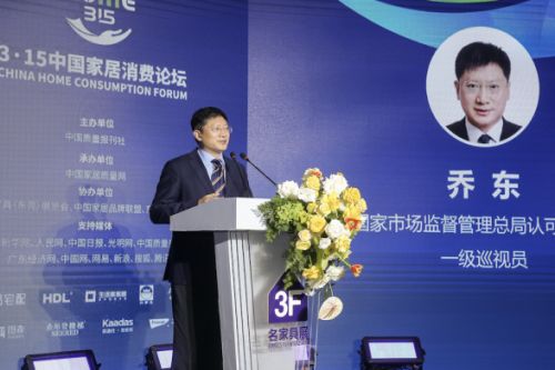 在刘总之后,国家市场监督管理总局认证检测司一级巡视员乔东做了关于家居行业检验检测工作的主旨演讲。首先他对于目前家居行业质量的问题做出了阐述:“目前,国家市场监管总局重点关注五个焦点,他说“食品安全,药品安全,特种设备安全,工业品安全”,这四大安全与家居行业息息相关,这是我们关注的四个安全的因素。”