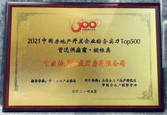 柏厨家居耀获2021中国房地产开发企业综合实力Top500首选供应商