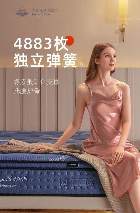 与其他品牌床垫相比,配置4883枚独立弹簧的西屋床垫S3是目前市面上比较多的独立弹簧床垫,这就如4883只小手一样,睡觉时能更好的支撑到人体,均匀分散体压,释放肌肉和骨骼压力,捕捉每一个睡姿。