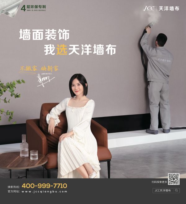 多年来,天洋墙布依托集团的核心优势,注重产品研发,将原创设计、健康环保理念贯彻于品牌始终,打造出多款独具辨识度、兼具艺术美学神韵的整体家居软装产品,用黑科技产品,真正为每位消费者实现了不搬家、焕新家的愿望,呈现高质且有艺术品位的居所。四层结构,环保专利,不用胶水,熨贴上墙,不用搬家,即贴即住,如今天洋墙布无可挑剔的品质正在借谢娜之口,将"墙面装饰选天洋墙布,不搬家,焕新家"的美好生活理念,传递给每一位消费者。
