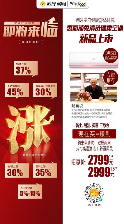空调价格领涨?惠而浦空调不涨价 为健康加码