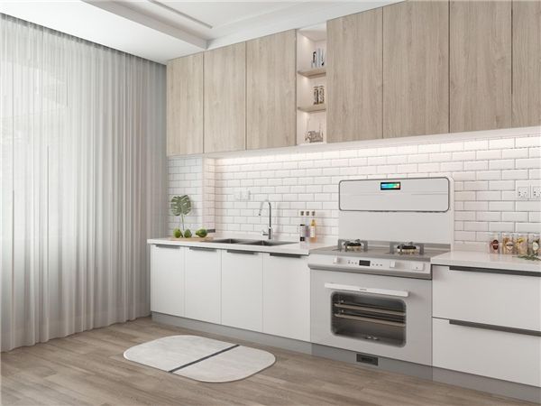 第四、选择合适的厨电。如果家里厨房面积小,可以打通厨房与客厅的边界,设计成开放厨房,开放厨房首先要解决油烟问题。选择油烟吸净力99.65%以上的奥田集成灶,轻松实现开放厨房装修。并且个别款式的集成灶还会带智能功能,例如奥田A8集成灶的智能机头,连上WIFI以后就可以上网,通过触控面板就可以控制烹饪啦!它不仅能够做饭,视频、音乐也统统不落下。有想做的菜式,可以直接在集成灶上搜索,抬眼就能够看到教程,超方便。奥田集成灶下半部分70L超大容量蒸烤箱可以保温、烘干、高温蒸、高温烘烤或者低温烘烤、风烘烤、发酵、解冻、普通蒸……功能齐全而且管够,就算有再多亲戚上门那也不在怕的。不需要花多长时间就把一大桌子饭做出来了,种类还很丰富。如果想要小厨房地方变的不拥挤,可以选择奥田蒸烤一体集成灶,只要1平方米,却一台顶五台,不用再找地方放烤箱、蒸锅等等,对于小厨房来说简直是福音!