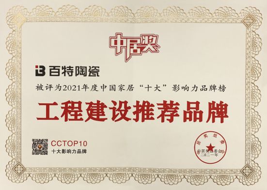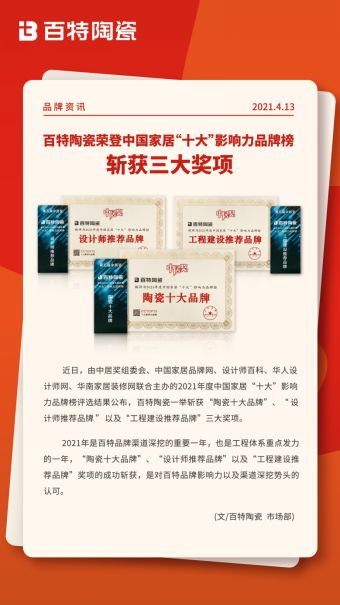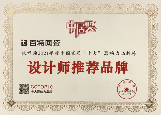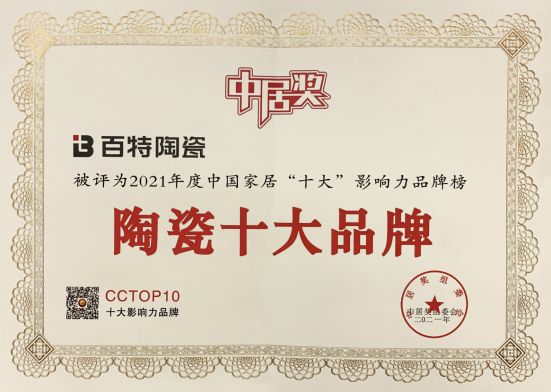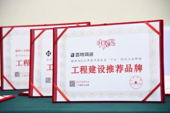 百特陶瓷荣登中国家居“十大”影响力品牌榜 斩获三大奖项