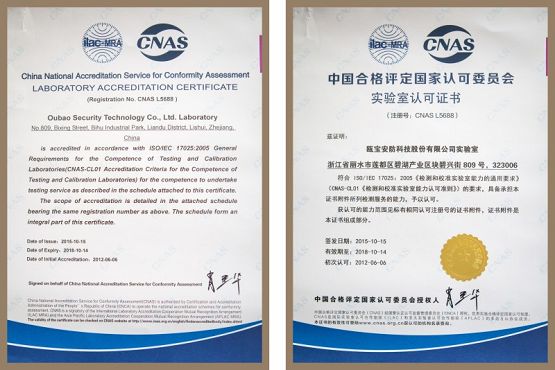自瓯宝成立以来便始终秉承“以质为先”的品质观,一代代瓯宝人本着踏实认真的态度,坚持精选最优质的材料,采用最精细的工艺,用心做好每一件产品。为此瓯宝建立了企业内的产品检测实验室,并成为国内首家通过CNAS认可和Intertek”卫星计划”认可的实验室。