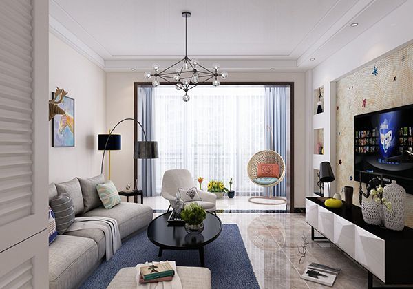 这种设计方式需要注意沙发的尺寸,不能太大也不能太小,太大会影响动线,太小则会显得空间空旷,所以在选择沙发时一定要根据户型大小实地测量。