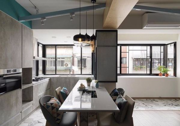 因为横厅本身就很宽敞,在中间加个岛台,设计成开放式的厨房,增强家人之间的交流,也是个不错的想法。