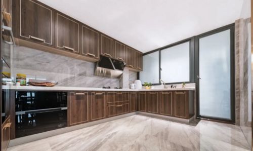 再来看看简一大理石瓷砖的另外一款灰色系瓷砖,古罗马灰,其纹理具有很强的开阔性,可以很好地弥补厨房和浴室空间格局的不足,同时,由于采用了密缝铺贴,更会让瓷砖间的污渍无处藏身,在兼顾颜值的同时,打理起来也更加方便。