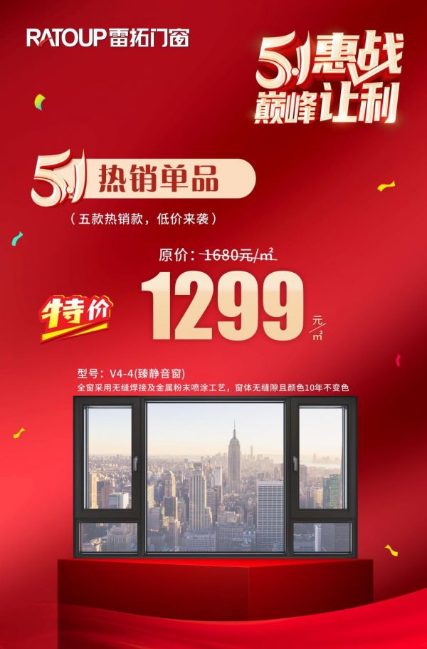 雷拓门窗“5•1惠战,巅峰让利”钜惠活动火爆进行中!