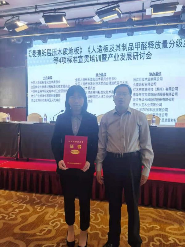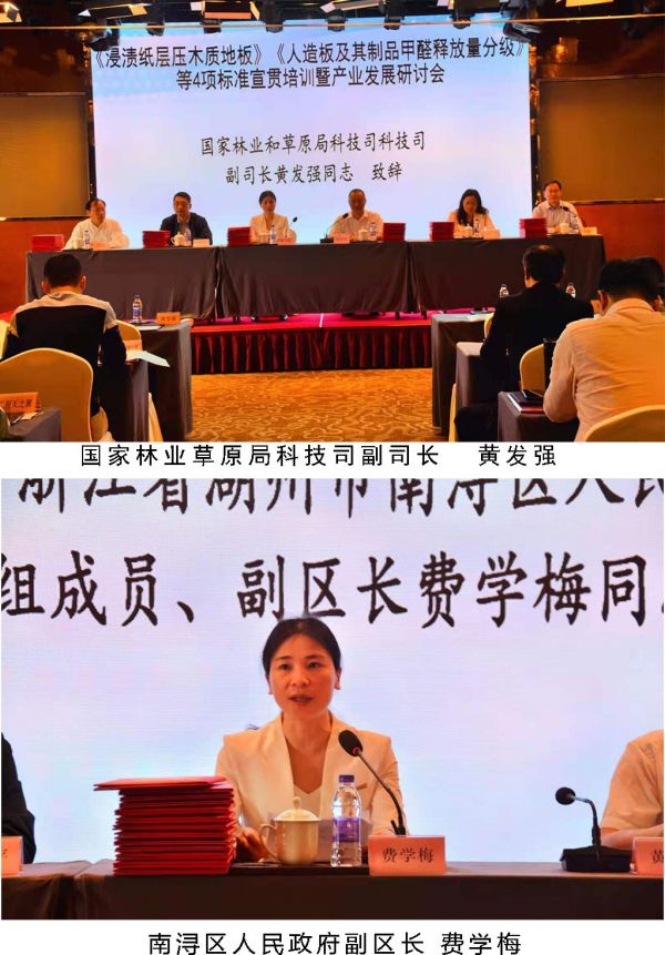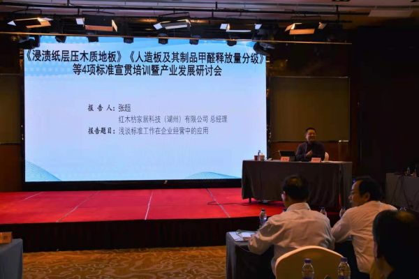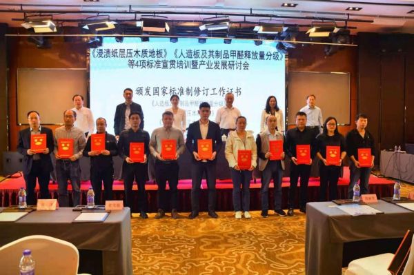 2021年4月26日,GB/T 24507-2020《 浸渍纸层压实木复合地板》《GB/T 39600-2021 人造板及其制品甲醛释放量分级》等 4项重要国家标准宣贯培训暨产业发展研讨会在浙江省湖州市南浔花园名都大酒店盛大开幕。