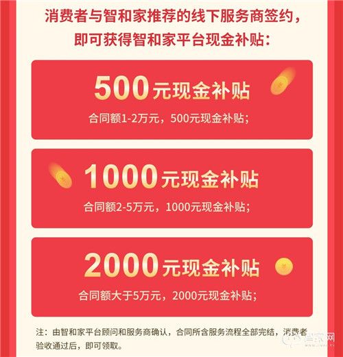 此外,活动中消费者上与智和家推荐的线下服务商签约,即可获得智和家平台现金补贴: