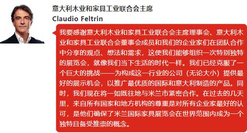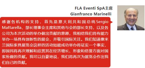 我们相信,9月5日开幕的展览会将吸引大量参展商的申请,同时我们也将确保此次盛会成为全球范围内展示行业产品、卓越和创新的范例。这个历史上富有生产力、强大活力和积极主动的地区所做出的实际贡献将确保各项倡议与活动得以推进,营造一种氛围和环境,使第59届米兰国际家具展览会成为真正独特的全球盛会。