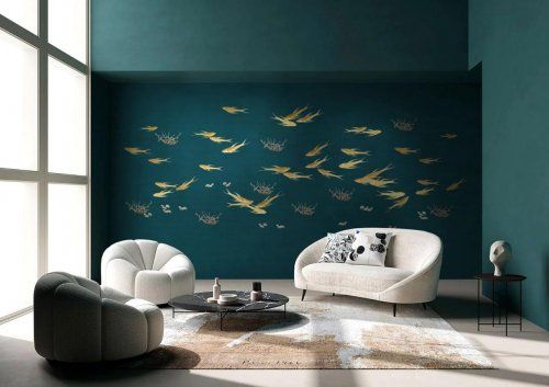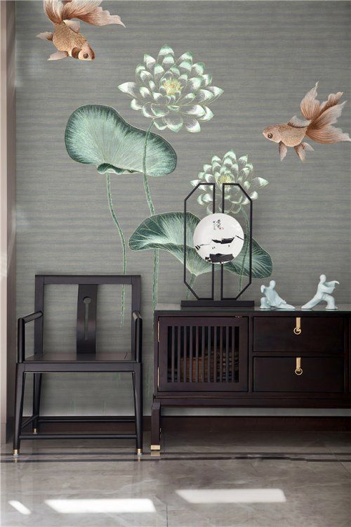 新中式墙布最具代表性也是最出彩的,就是它的花型。常见的新中式墙布中一般以花鸟、山水等中国风元素为主,寓意富贵吉祥,意境悠远,还可以增添空间活力。领绣墙布新品《水岸沧清》系列,就是选取了游鱼元素,杏花疏影里品读绣娘匠心,身心交予空灵,静享至美臻品。