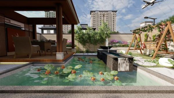 庭院中心修建水池,与休息区和休闲区契合,清澈的水流让人心情愉快,小喷泉景观活力十足,为庭院赋予灵动之感,潺潺的流水让人心情放松。