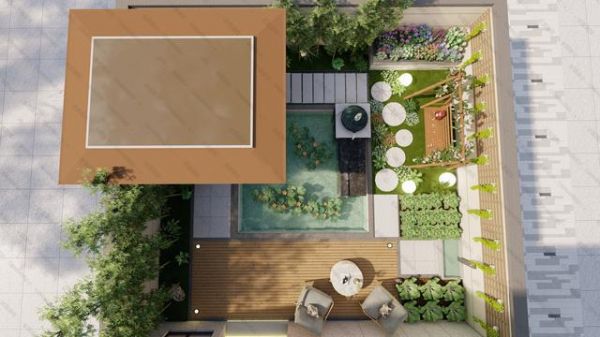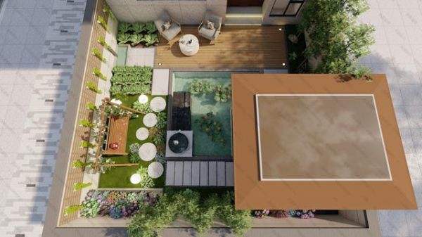 33㎡新中式庭院设计,小空间大作为,菜园、养鱼池、休息区全都有
