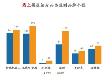 据奥维云网(AVC)线上渠道监测数据显示,2020年国内智能扫地机器人品牌个数已达到155个,除了科沃斯、iRobot、石头等品牌外,也不乏有海尔、美的等传统家电品牌的身影,同时还有云鲸、日本Uoni由利等新入品牌奋力追赶。