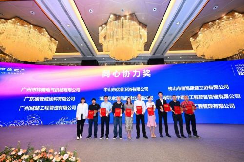 凭借企业自身产品过硬的质量及贴心的工程服务,康健卫浴在中海地产项目中收获了众多住户的一致好评,更在本次大会中荣获主办方颁发的“同心协力奖”。