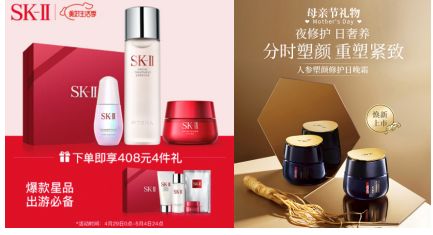 SK-II护肤套装礼盒(左)、羽西人参塑颜修护日晚霜护肤礼盒(右)