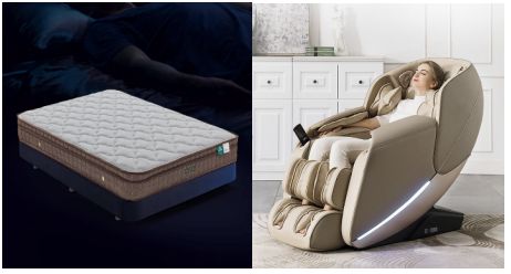 雅兰独立袋装弹簧天然乳胶床垫(左)、芝华仕豪华智能语音多功能电动按摩椅(右)