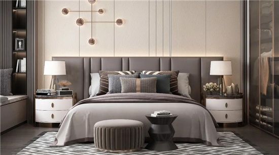 棕灰调永不过时,温柔如水的主卧透过墙品的暖白色调,编织着一个又一个美梦,每一刻皆是宁静。