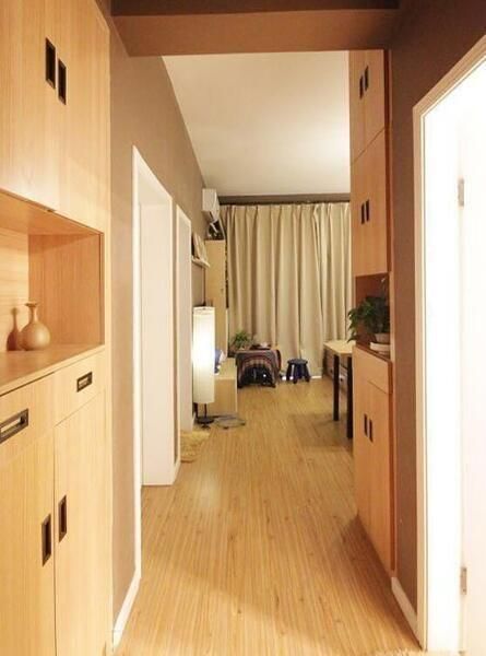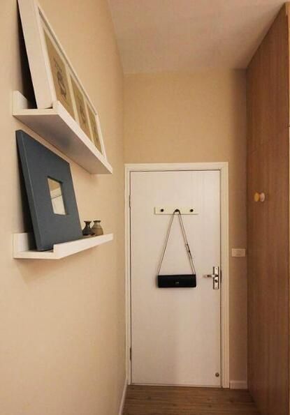 进入卧室,右侧特意用衣柜隔断,腾出了这个小过道,左边钉上木板,简单的小装饰一下,表现的更自然,更品位一些。