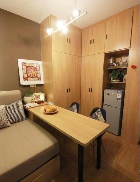 从玄关进来后就是大厅区域,摆上一张小桌,划分了餐厅和客厅区域。对于小户型而言,每一寸空间都很重要,不能浪费一点的空间。