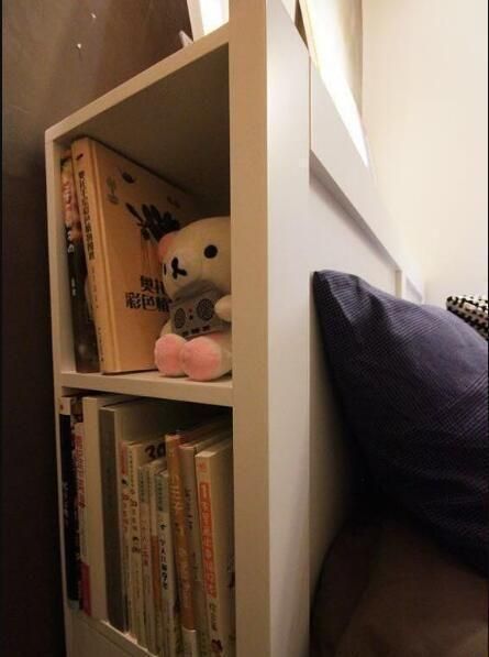 床头侧面带有小柜子,就充当这个卧室的书柜了,收纳自己经常看的几本书,拿取非常方便。