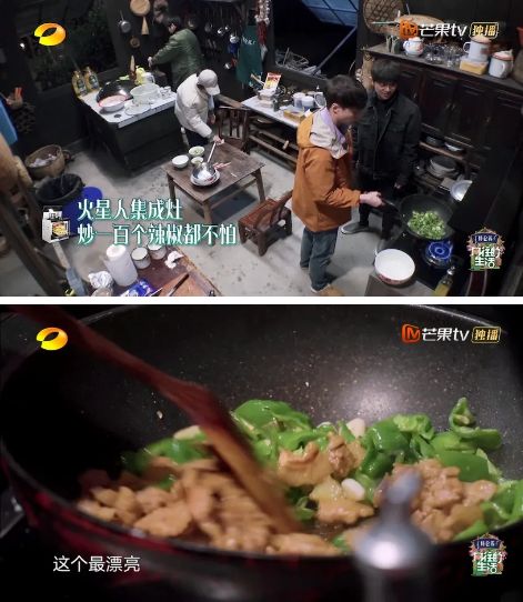 黄磊老师向张艺兴和彭昱畅安利火星人集成灶,他表示:太牛了,有了火星人集成灶,蒸烤一体,特别方便,油烟吸力也特别强,炒一百个辣椒都不怕!