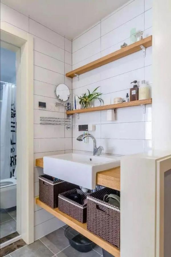 小狐建议大家加点钱做个台下盆,一劳永逸避免台盆周围积水发霉的问题,另外,家具要么选择落地款杜绝卫生死角,要么选择壁挂款,打扫方便。