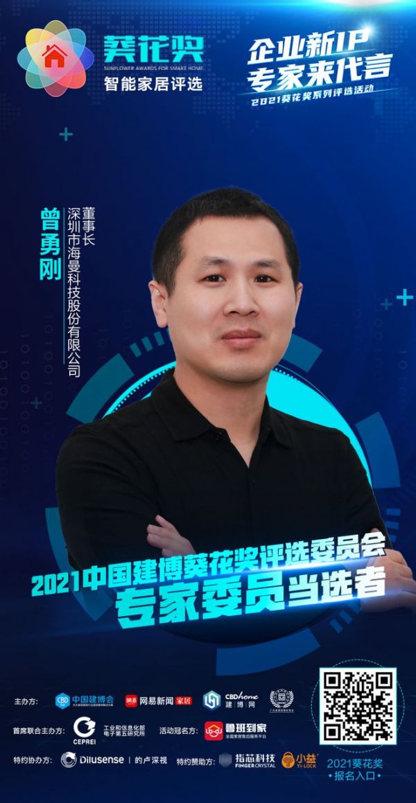 企业新IP,专家来代言 | 海曼科技 曾勇刚 当选2021中国建博葵花奖评选委员会专家委员